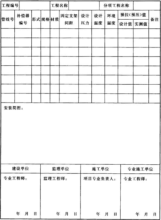 A.0.8 工業(yè)有色金屬管道補(bǔ)償裝置安裝記錄宜符合表A.0.8的規(guī)定。