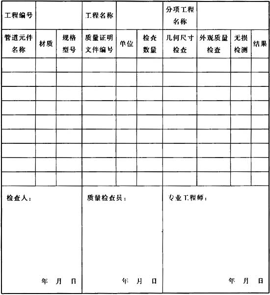 A.0.1 工業(yè)有色金屬管道元件檢查記錄宜符合表A.0.1的規(guī)定。