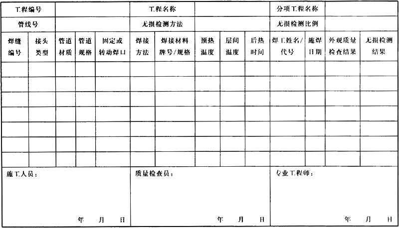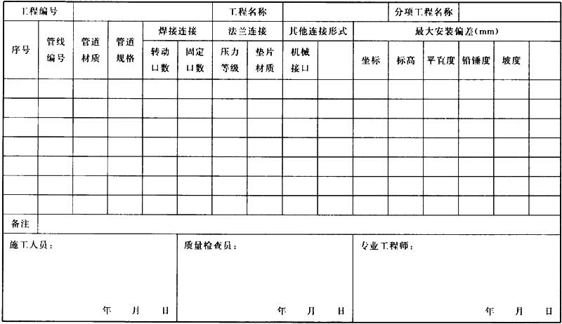 附錄A 工業(yè)有色金屬管道施工質(zhì)量檢查記錄