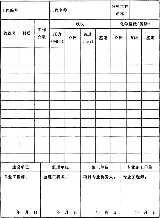 16 管道系統(tǒng)吹掃與清洗記錄。