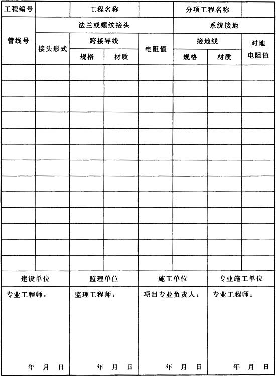 A.0.9 工業(yè)有色金屬管道靜電接地測(cè)試記錄宜符合表A.0.9的規(guī)定。