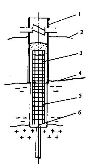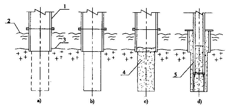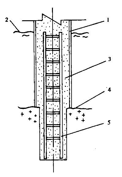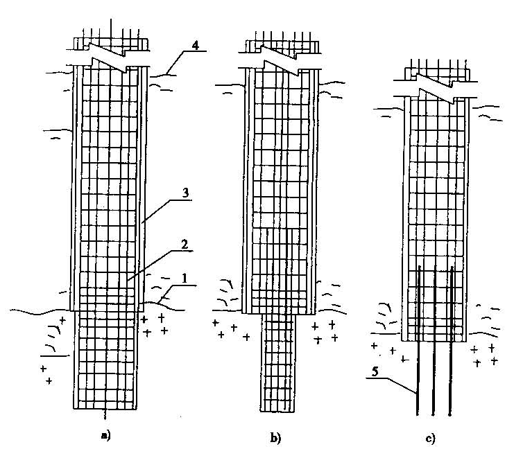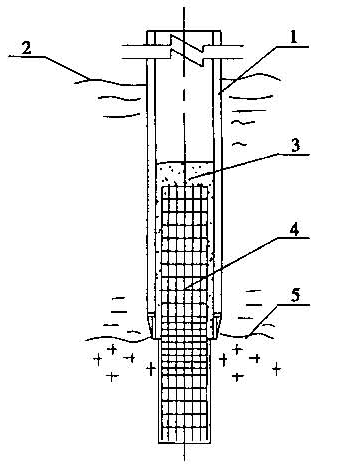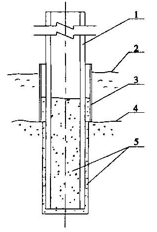 1-預(yù)制樁;2-覆蓋層頂面;3-鋼護(hù)筒;4-巖層面;5-水下混凝土