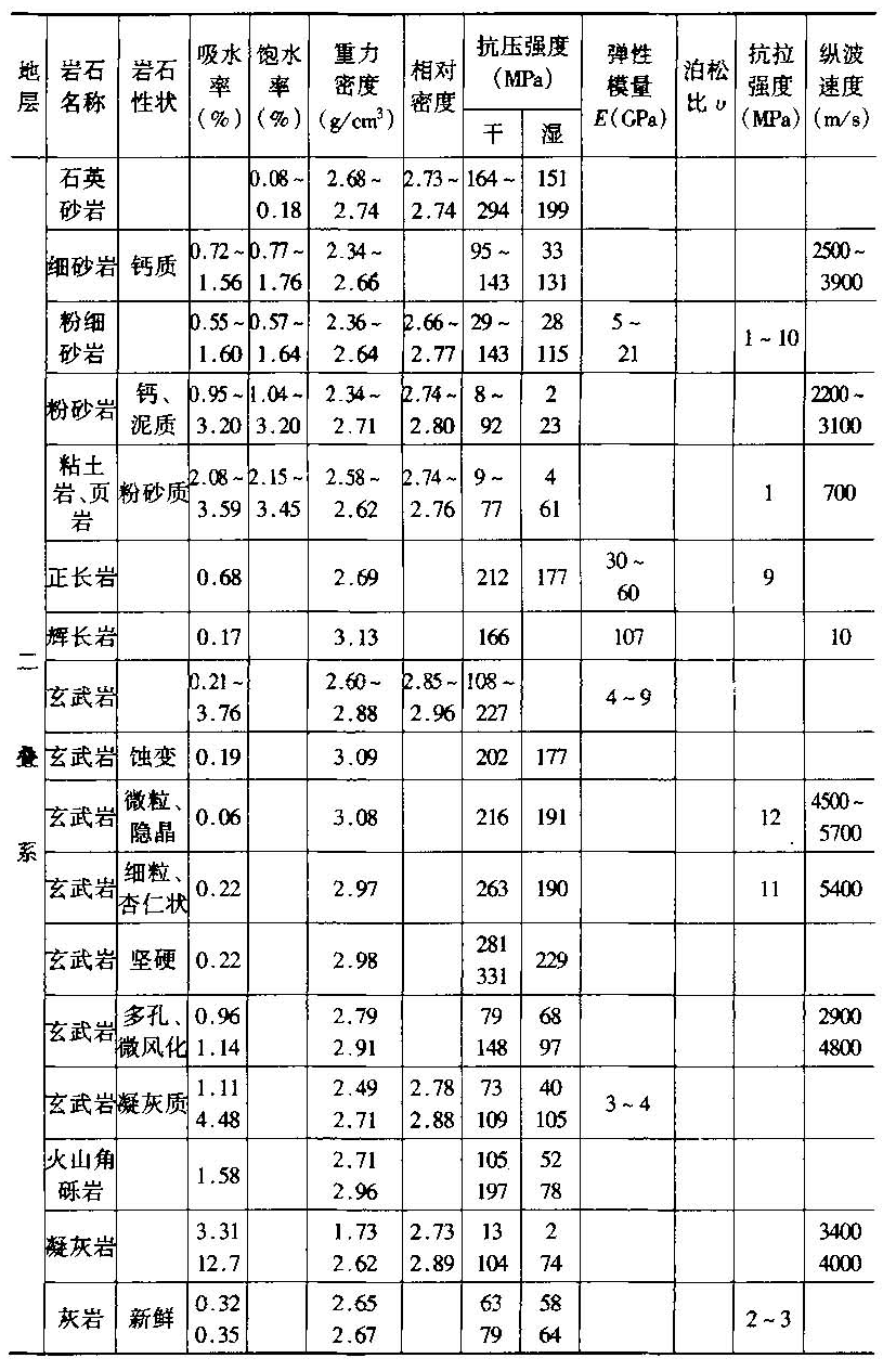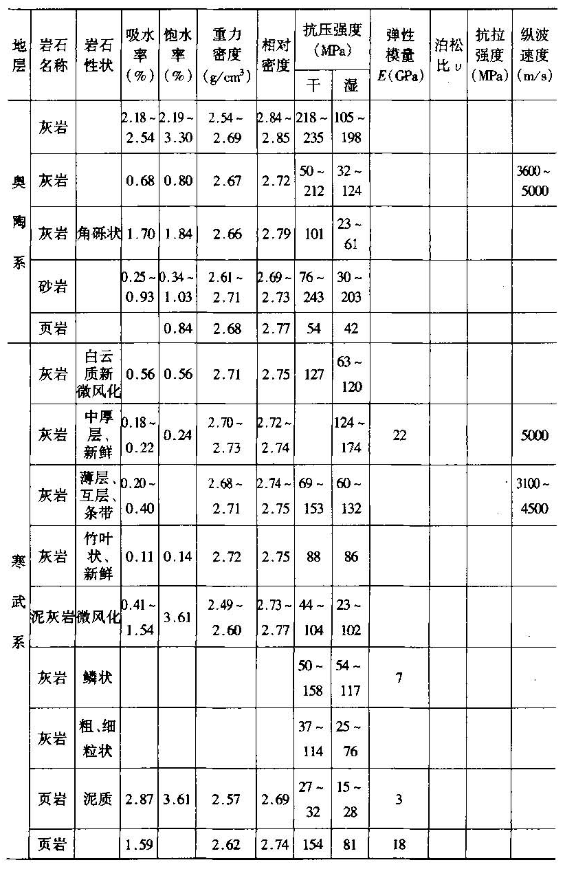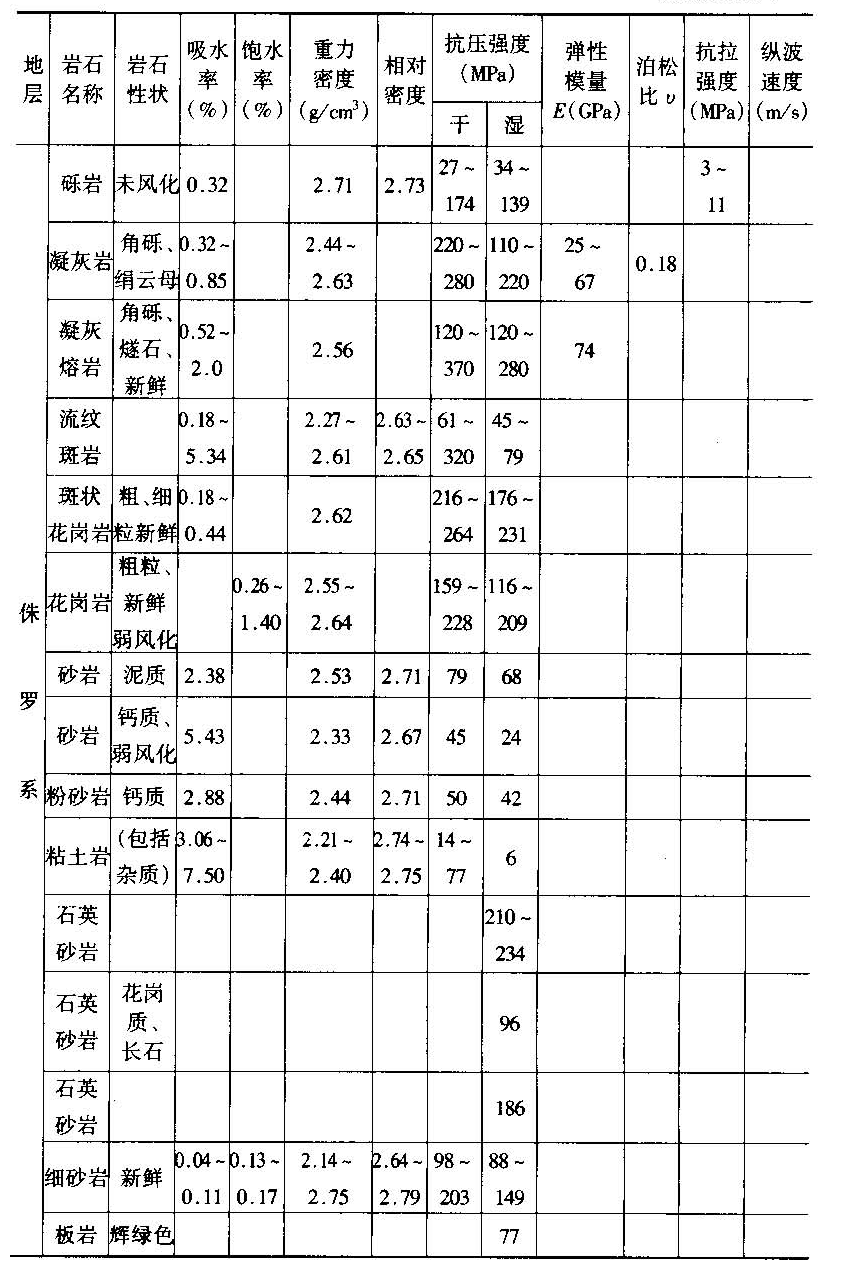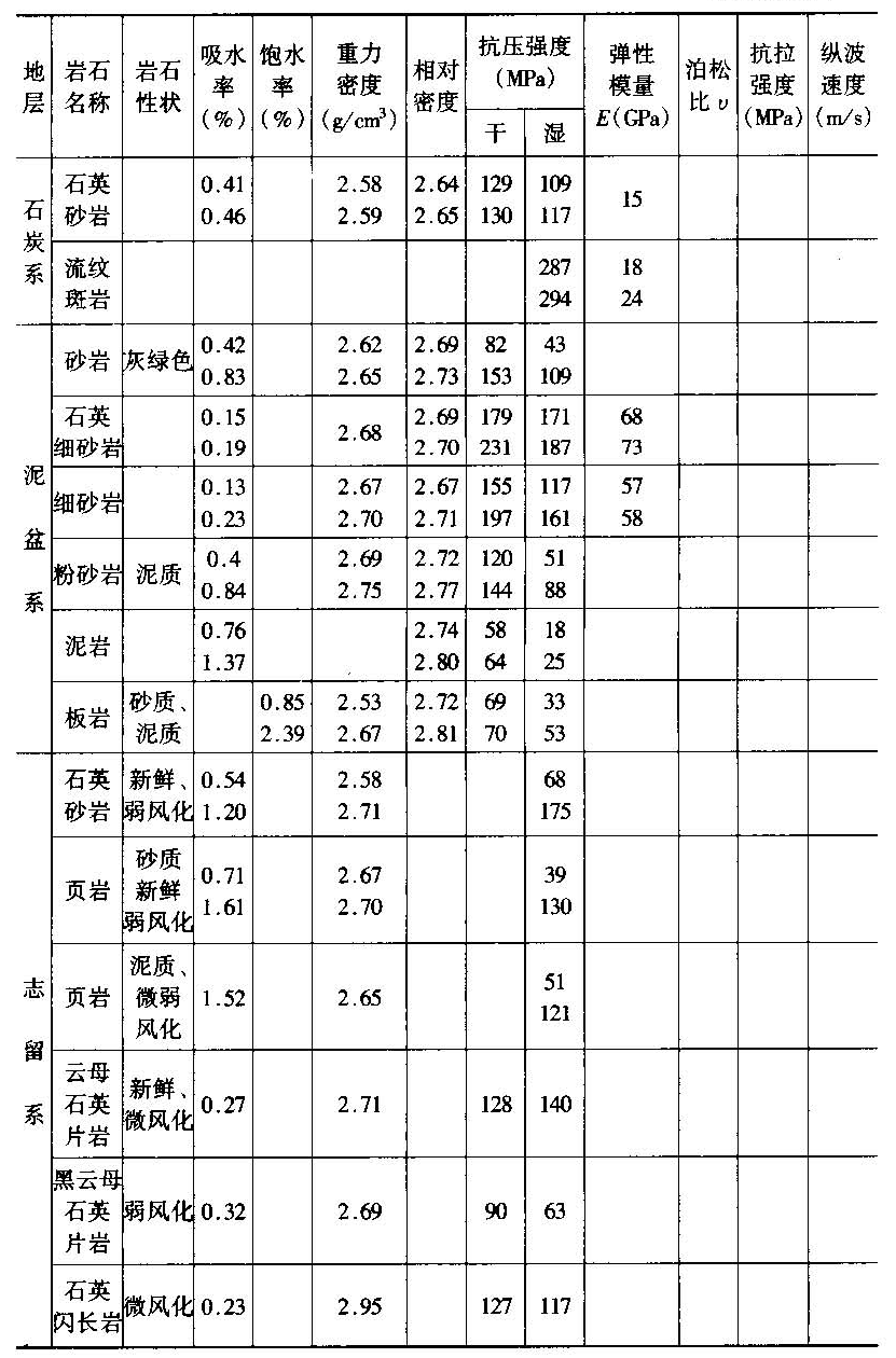 巖石物理力學(xué)參數(shù)匯總表 表A.0.4