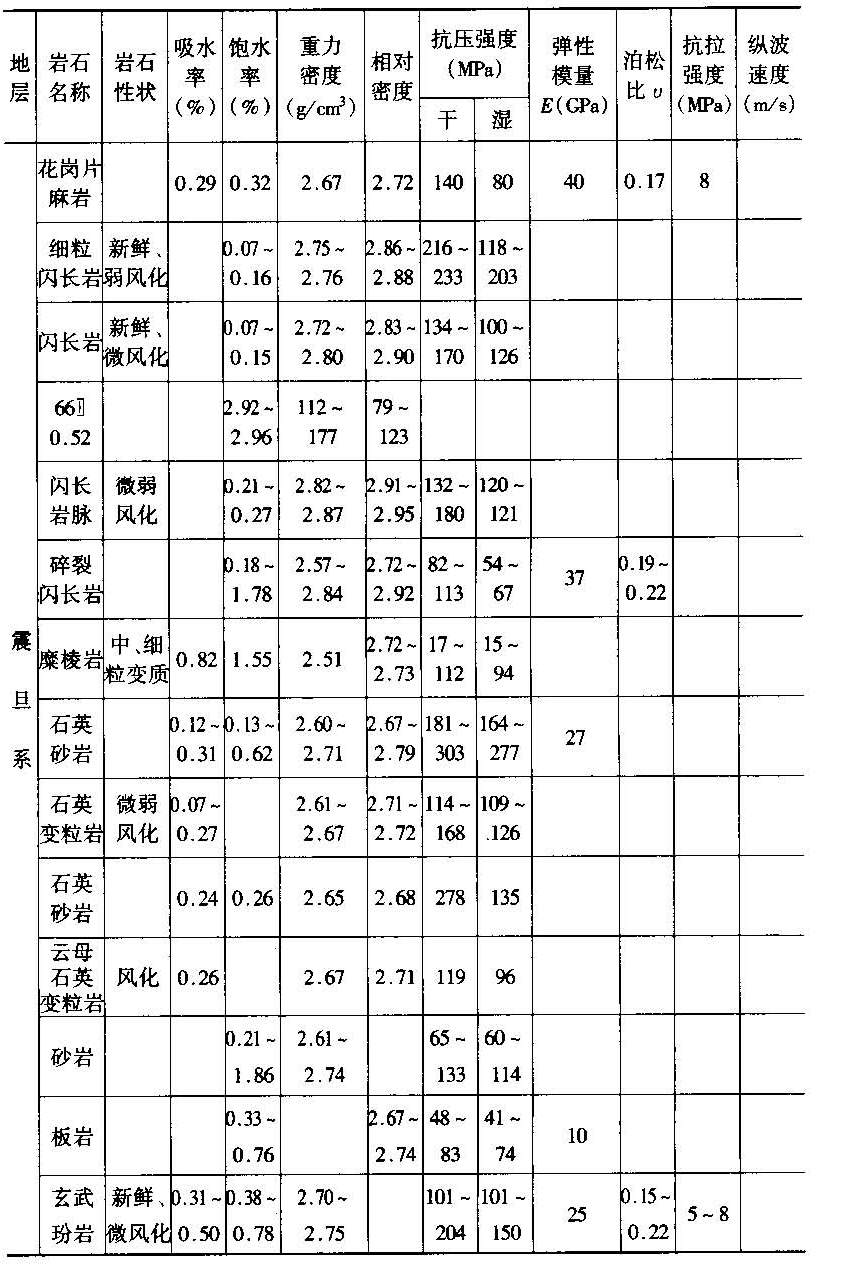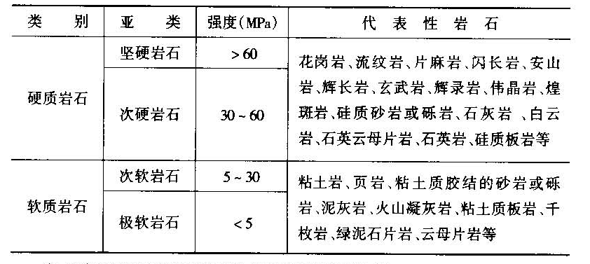 注:強(qiáng)度指新鮮巖塊的飽和單軸極限抗壓強(qiáng)度標(biāo)準(zhǔn)值。