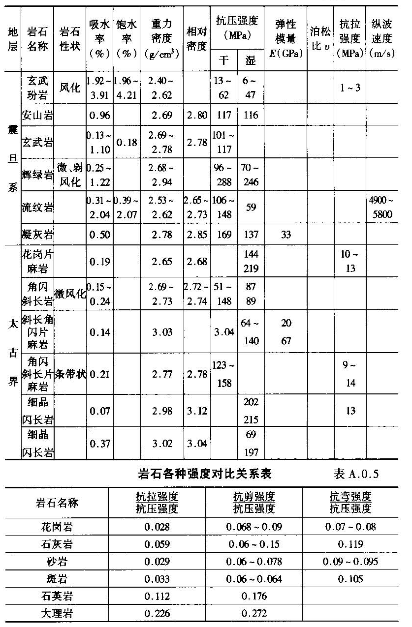 A.0.4 巖石物理力學(xué)參數(shù),見(jiàn)表A.0.4。