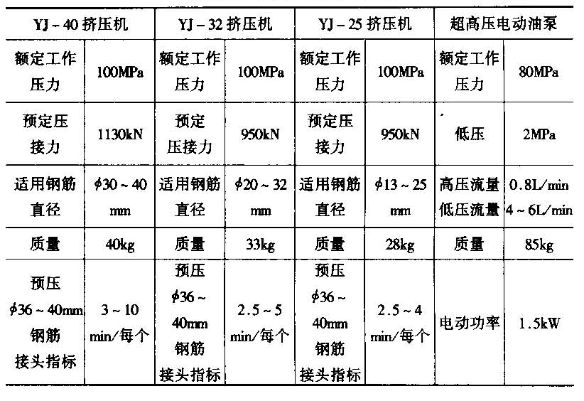 鋼筋擠壓機(jī)的主要技術(shù)指標(biāo) 表D