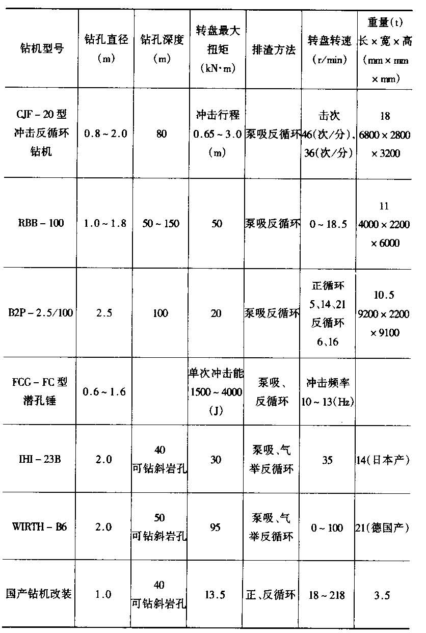 附錄C 各種嵌巖樁鉆機(jī)性能參考表
