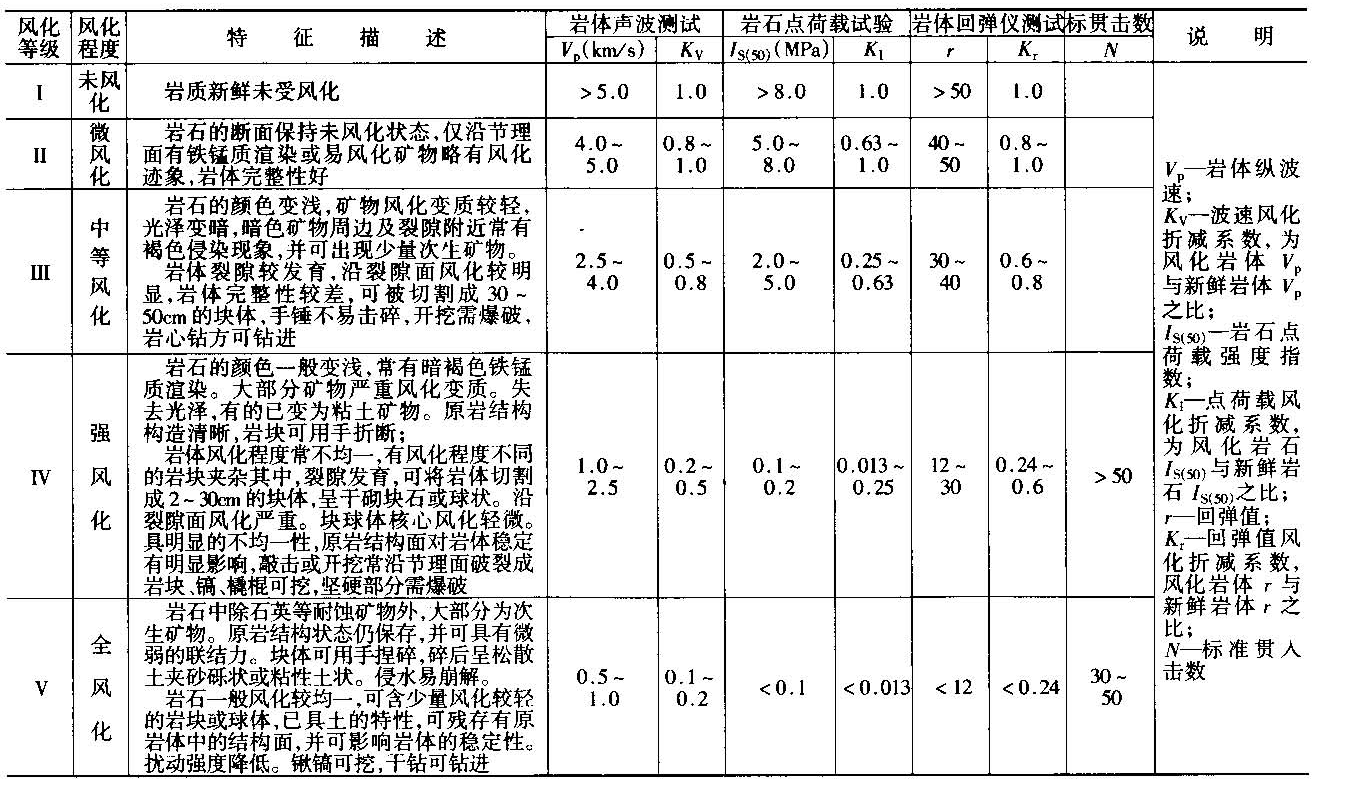 硬質(zhì)巖石巖體風(fēng)化程度劃分 表A.0.2
