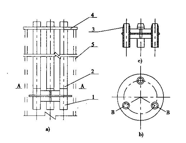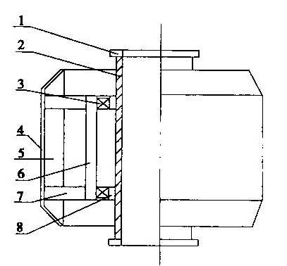 圖B.0.10 導(dǎo)向扶正器結(jié)構(gòu)示意圖1-法蘭接頭;2-中心管;3-滾動(dòng)軸承或鑄鐵軸套;4-導(dǎo)向護(hù)圈;5-筋板;6-外殼體;7-支撐筋板;8-內(nèi)殼體