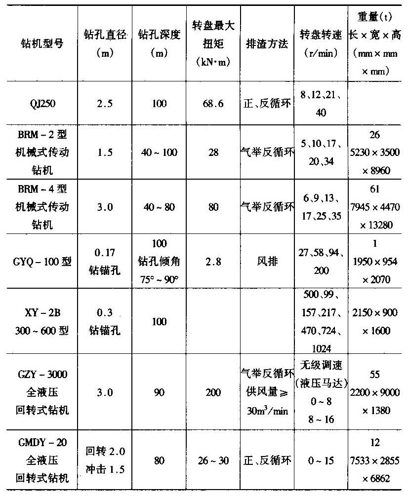 注:符合上表性能的鉆機(jī),由于生產(chǎn)廠家不同,其型號(hào)有所不同,此表僅作參考。
