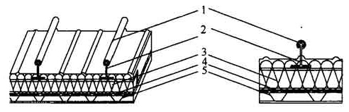 1——鋁合金面板;2——支托;3——絕熱保溫層;4——隔氣層;5——壓型鋼板