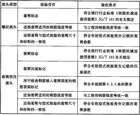 7.0.4 接頭安裝前的檢驗(yàn)與驗(yàn)收應(yīng)滿(mǎn)足表7.0.4的要求。