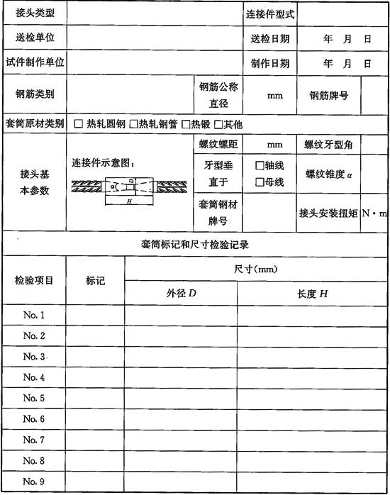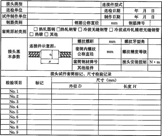 B.0.2 直螺紋接頭型式檢驗(yàn)報(bào)告宜按表B.0.2-1、表B.0.2-2的式樣執(zhí)行。