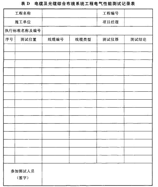 附錄D電纜及光纜綜合布線系統(tǒng)工程電氣性能測試記錄表