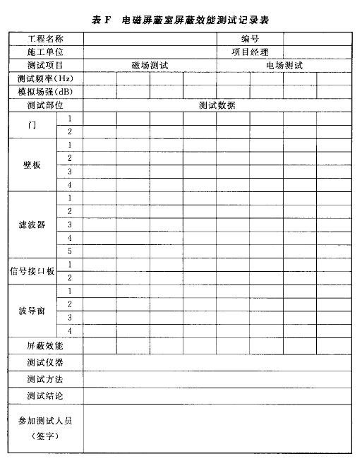 附錄F電磁屏蔽室屏蔽效能測試記錄表