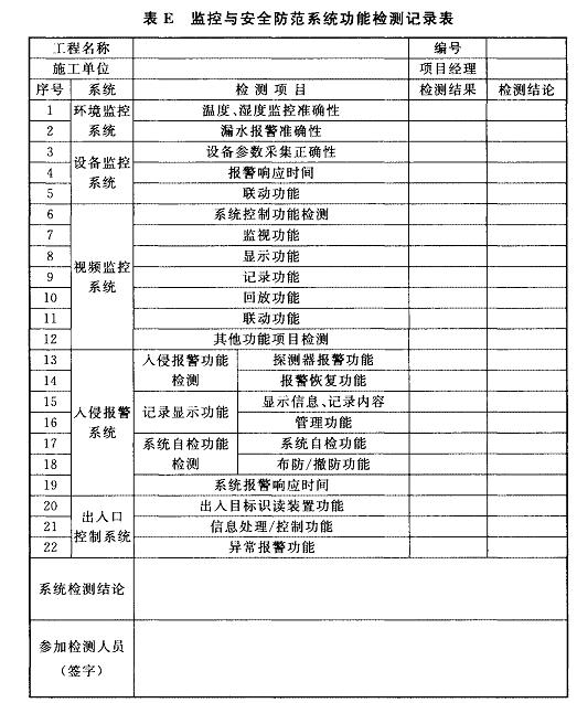 附錄E監(jiān)控與安全防范系統(tǒng)功能檢測記錄表