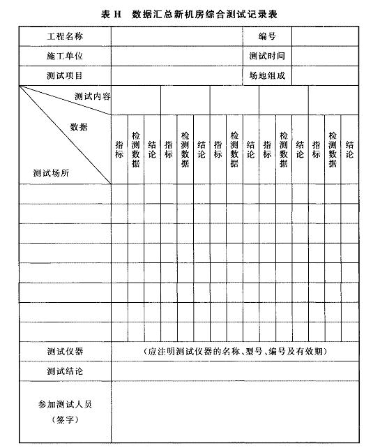 附錄H數(shù)據(jù)中心機房綜合測試記錄表