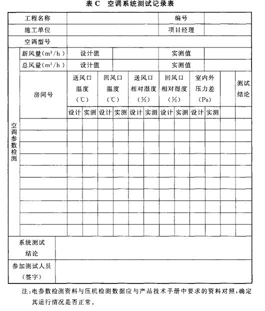 附錄C空調(diào)系統(tǒng)測試記錄表