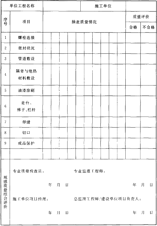 C.0.3 單位工程觀感質(zhì)量驗(yàn)收宜按表C.0.3進(jìn)行記錄。