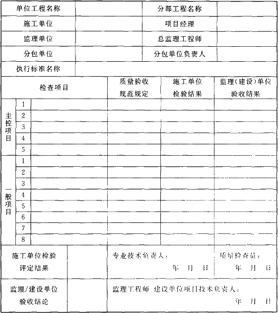 B.0.1 分部工程質(zhì)量驗(yàn)收宜按表B.0.1進(jìn)行記錄。