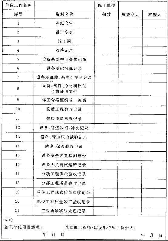 表D.0.2 設(shè)備無負(fù)荷聯(lián)動試運(yùn)轉(zhuǎn)記錄