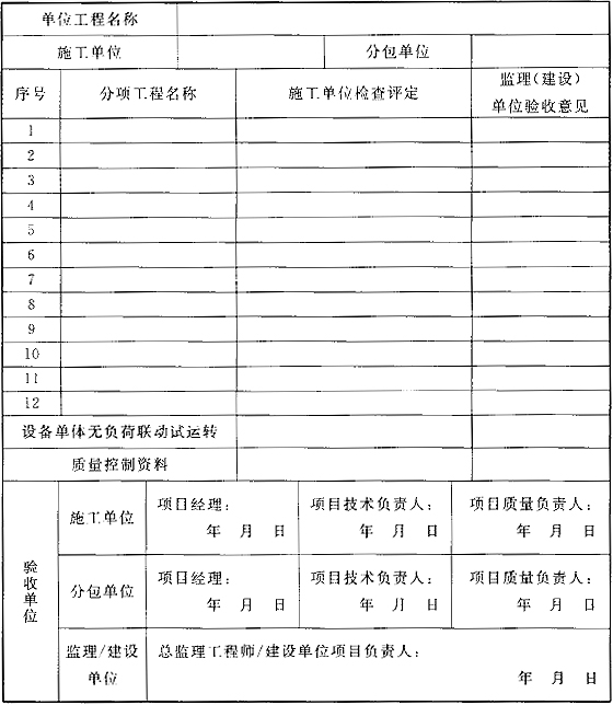 D.0.1 單體設(shè)備無負(fù)荷試運(yùn)轉(zhuǎn)宜按表D.0.1進(jìn)行記錄。