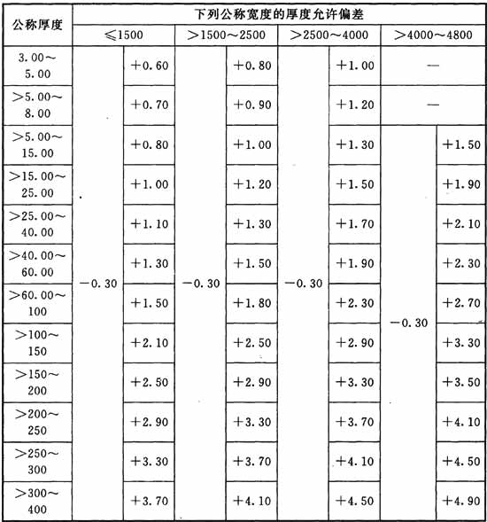 注:表中厚度允許偏差是偏差類別為B類偏差鋼板。