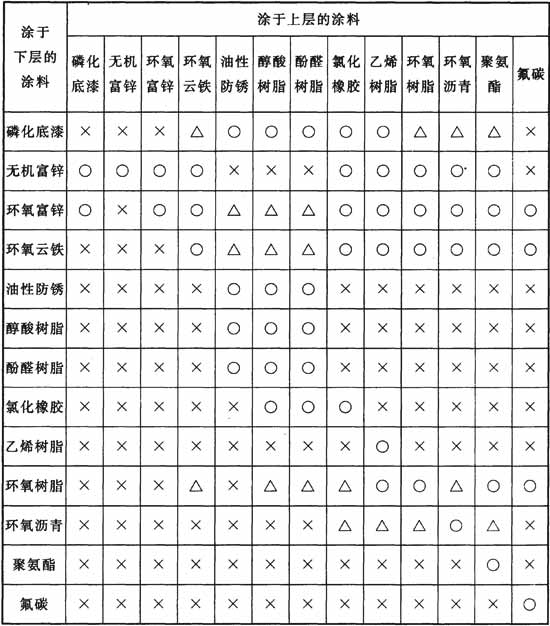 注:○-可以;△-要根據(jù)條件而定(注意涂覆間隔時(shí)間);×-不可以。