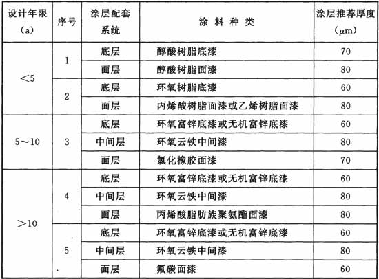 G.0.2 明管外壁處于空氣環(huán)境下的涂層配套系統(tǒng),可按表G.0.2選用。