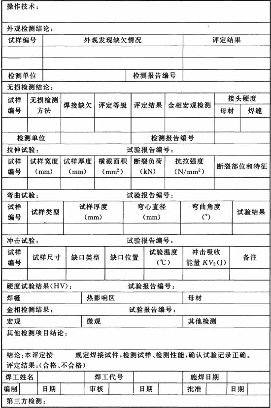 表E.0.2 焊接工藝評(píng)定報(bào)告格式