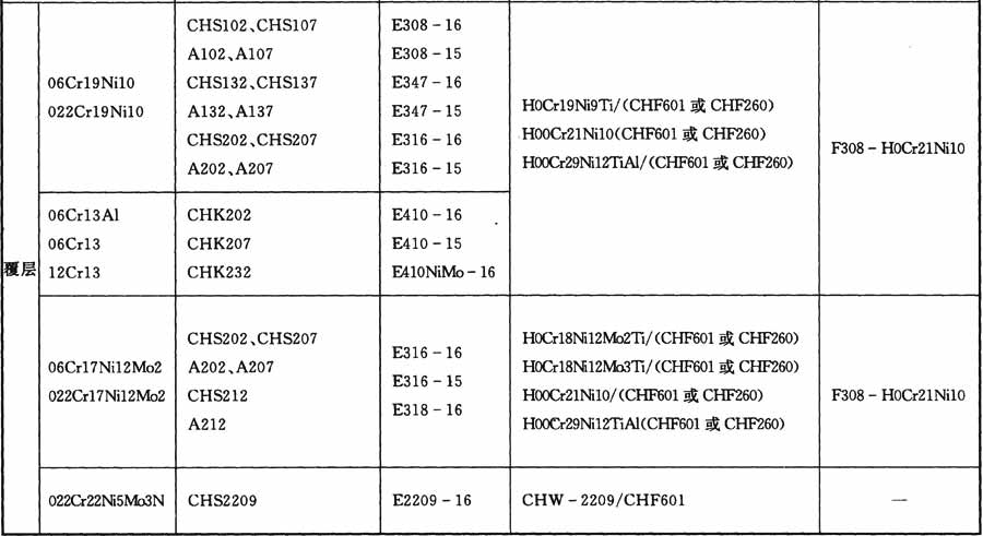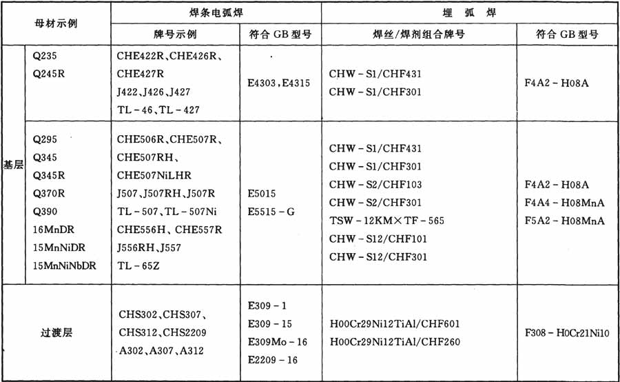 表C.0.3 不銹鋼復(fù)合鋼板焊條電弧焊和埋弧焊時(shí)焊接材料的選用