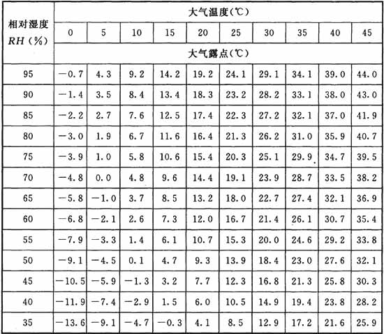B.0.5 大氣露點(diǎn)換算表應(yīng)符合表B.0.5的規(guī)定。