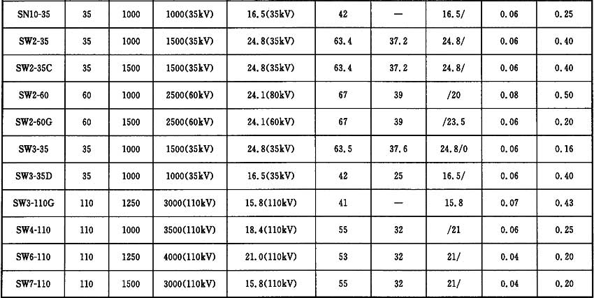 注:括號內(nèi)數(shù)字適用于裝有自動重合閘裝置的斷路器。