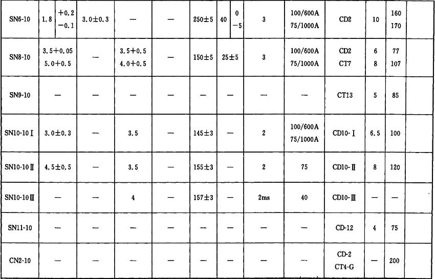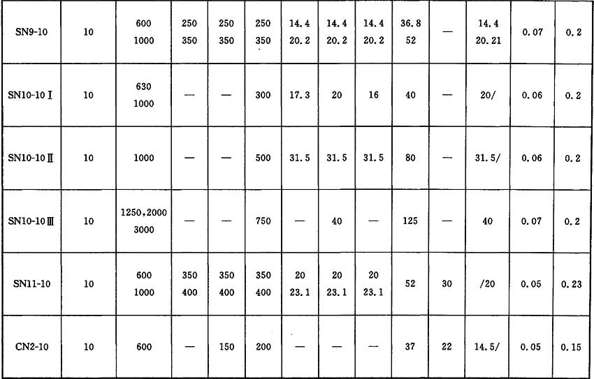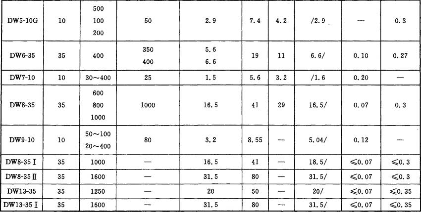 表A.0.16 高壓少油斷路器技術(shù)數(shù)據(jù)