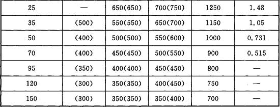 2)括號內(nèi)數(shù)據(jù)為礦用額定電壓6/10kV及以下移動屏蔽軟電纜(MYPT、MYP)。