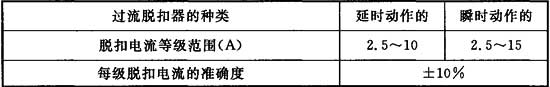 注:對于延時動作的過流脫扣器,應(yīng)按制造廠提供的脫扣電流與動作時延的關(guān)系曲線進(jìn)行核對。另外,還應(yīng)檢查在預(yù)定時延終了前主回路電流降至返回值時,脫扣器不應(yīng)動作。