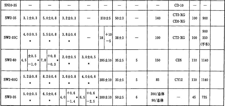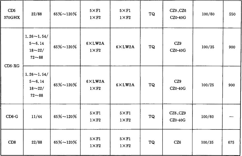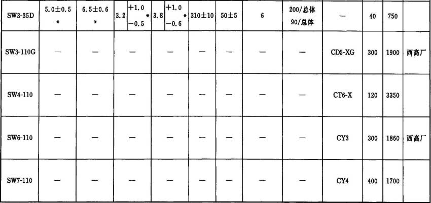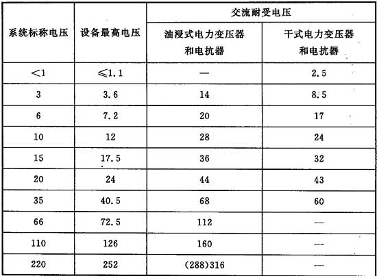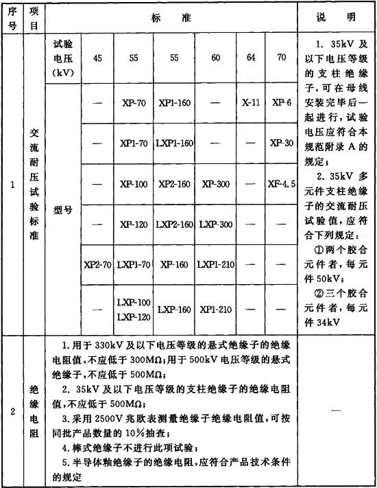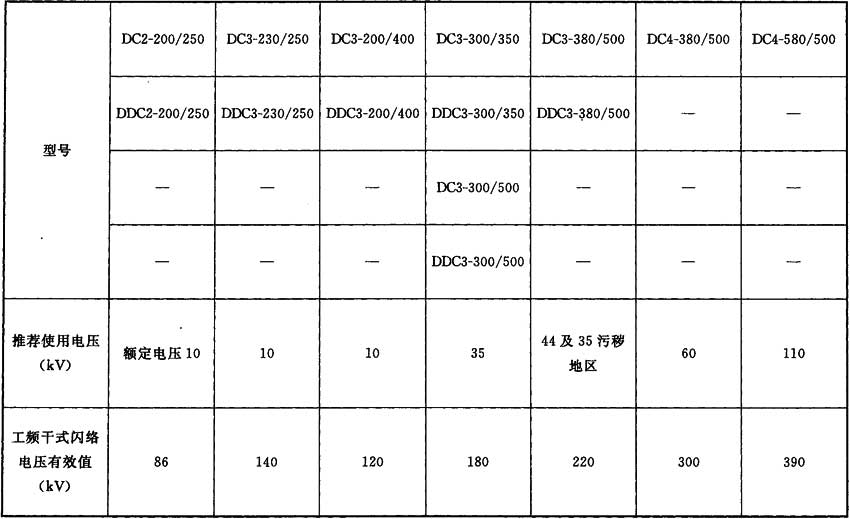 注:表中型號根據(jù)目前制造廠實際產(chǎn)品列入,如有遺漏或不同時,可用出廠干閃絡(luò)試驗電壓的75%進(jìn)行試驗。