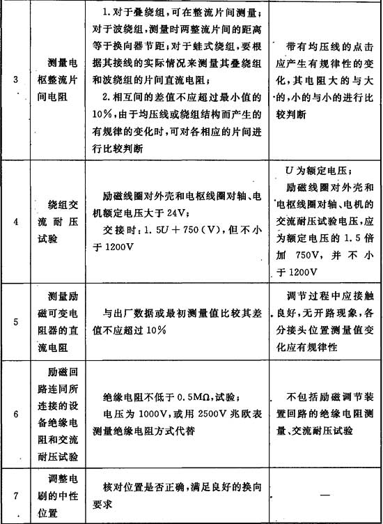 表A.0.11 直流電動機(jī)的試驗項目和標(biāo)準(zhǔn)