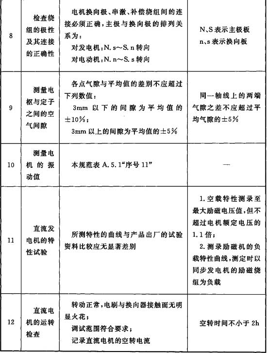 A.0.11 直流電動機(jī)的試驗項目和標(biāo)準(zhǔn)應(yīng)符合表A.0.11的規(guī)定。