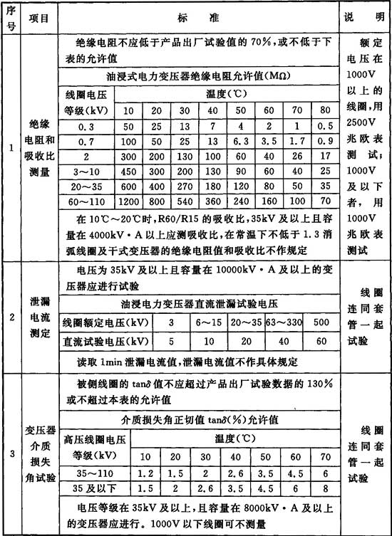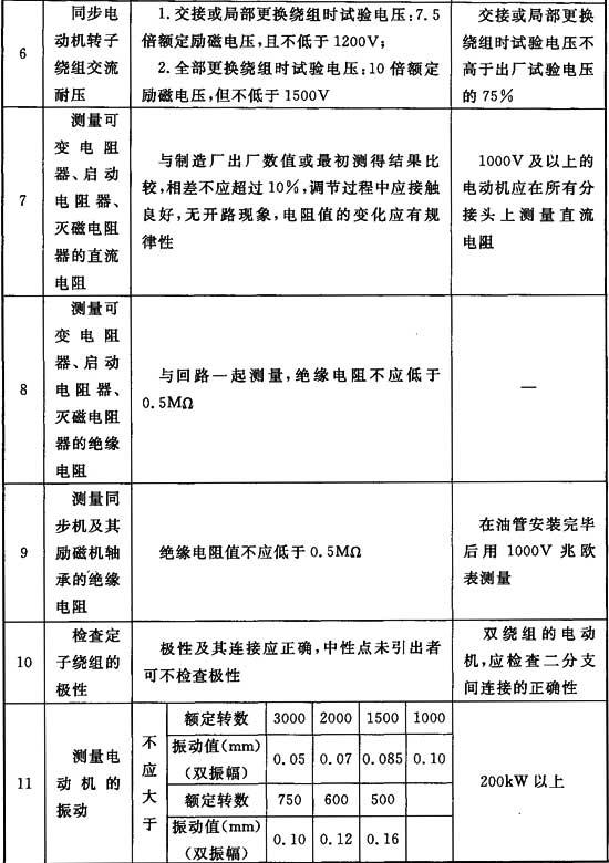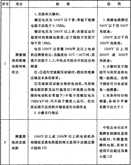 注:1 容量100kW電壓在1000V以下電動機(jī),只進(jìn)行1、8、10項試驗。