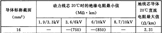注:表中數(shù)值為換算到長度1km,溫度為20℃時的絕緣電阻值。