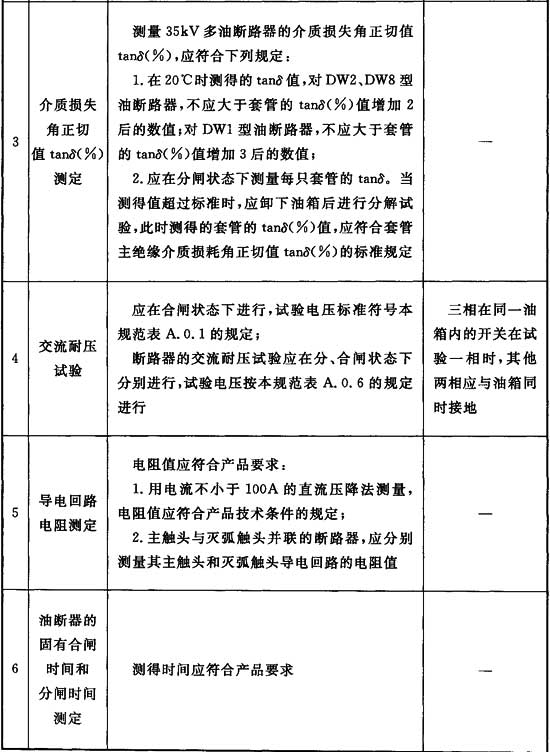 4 交流耐壓試驗,應(yīng)按本規(guī)范第A.0.1條的規(guī)定;其中空氣斷路器應(yīng)在分閘時各斷口間及合閘狀態(tài)下進(jìn)行交流耐壓試驗;磁吹斷路器應(yīng)在分閘狀態(tài)下進(jìn)行斷口交流耐壓試驗。