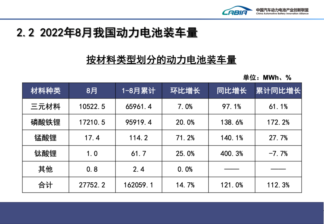 2022年|2022年8月動(dòng)力電池裝車量50.1GWh 同比增長(zhǎng)157.0%