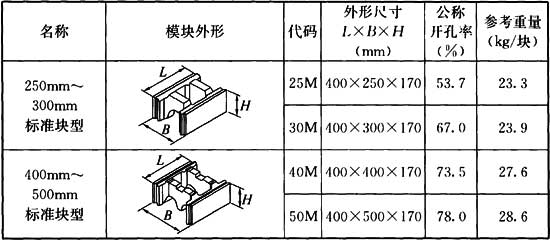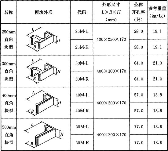 附錄A 混凝土模塊規(guī)格表