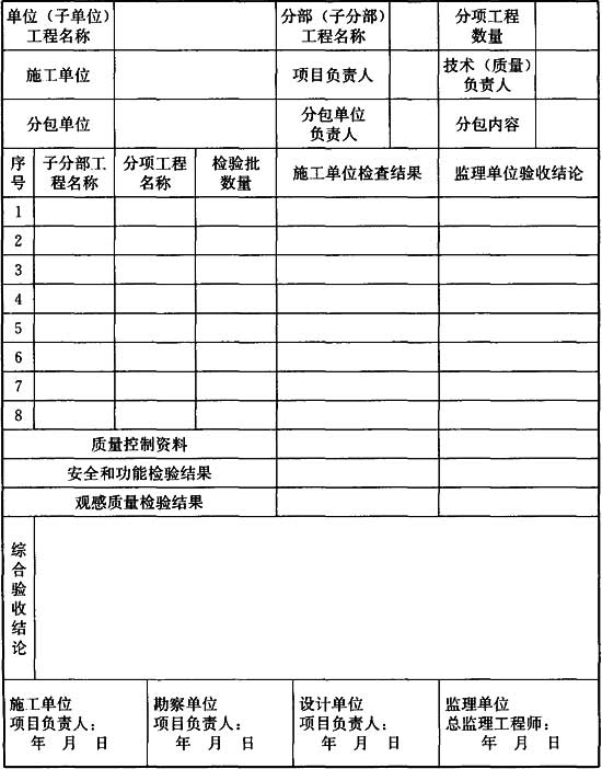 附錄B 分部工程質(zhì)量驗(yàn)收記錄