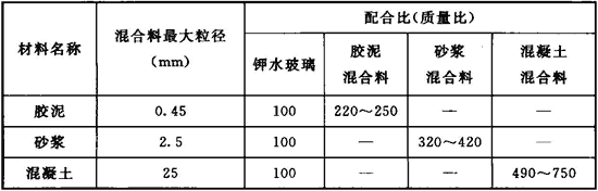 注:1 鉀水玻璃膠泥粉已含有鉀水玻璃的固化劑和其他外加劑;