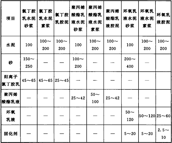 表B.0.7 聚合物水泥砂漿配合比(質(zhì)量比)