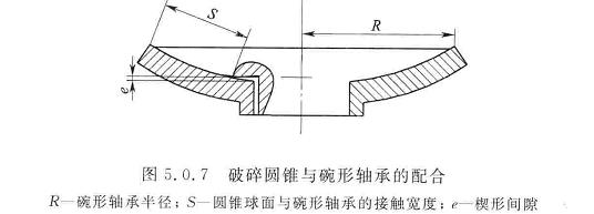 5.0.5錐形襯套與破碎圓錐主軸和偏心套與機(jī)座襯套之間的配合間隙(圖5.0.5).應(yīng)符合表5.0.5的規(guī)定;尼龍?zhí)椎呐浜祥g隙,應(yīng)符合隨機(jī)技術(shù)文件的規(guī)定。