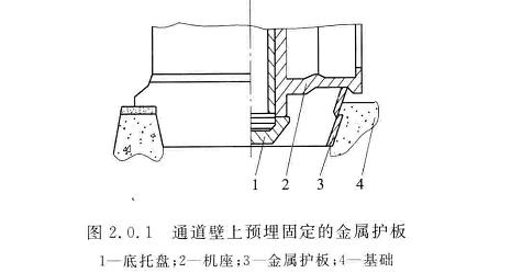 2.0.1破碎機(jī)卸料通道壁上的金屬護(hù)板,應(yīng)在機(jī)座就位前固定在基礎(chǔ)上,不得將其固定在機(jī)座上(圖2.0.1)。