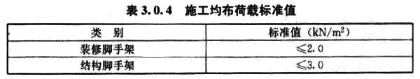 3.0.4 竹腳手架作業(yè)層上的施工均布荷載標準值應符合表3.0.4的規(guī)定。